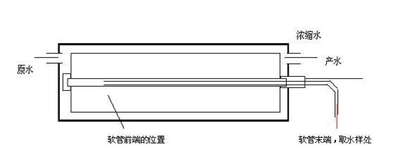 探針?lè)ㄊ遣捎盟芰瞎懿迦胫行募芮邑灤┤L(zhǎng)進(jìn)行測(cè)試不同位置膜元件產(chǎn)水電導(dǎo)率的方法。被采樣的產(chǎn)水來(lái)自軟管前端位置上游的產(chǎn)水,表示軟管前端位置的水質(zhì)。