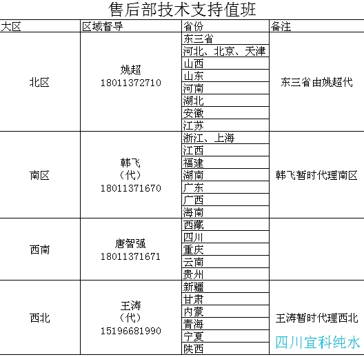 (另附售后部技術(shù)支持值班表)
